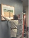 So what’s wrong with this picture hanging effort? Is she holding the picture at that level to read the title and artist’s name at the bottom? Likely not! She, a museum curator no less, and her assistant (off stage right) are hanging art the way most of us do, unless, that is, we step into the third dimension.